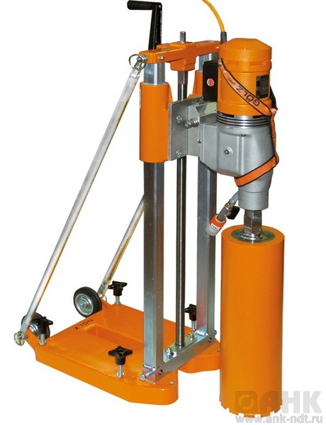 Установка алмазного бурения Goelz КВ-150 рассчитана на бурение бетона, армированного бетона, природного и синтетического камня, асфальта, алмазными колонковыми бурами с подачей воды для отверстий диаметром от 50 до 300 мм.
