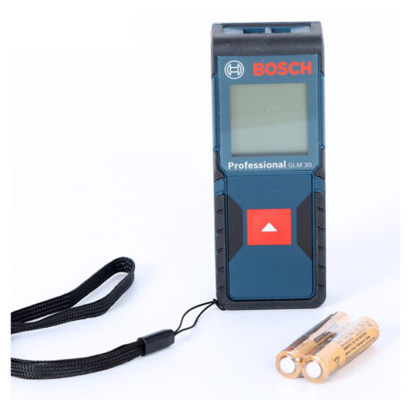 Компактные и лёгкий, дальномера позволяют всегда иметь его при себе, он не занимает много места в сумке с инструментами, кармане или бардачке автомобиля. Данная модель является одной из самых лёгких лазерных рулеток, представленных на рынке профессиональных дальномеров. Удобный мягкий чехол позволяет повесить лазерный дальномер на ремень. Питание Bosch GLM 30 осуществляется от двух стандартных батареек типа ААА. Одного заряда батарей достаточно для осуществления 5000 стандартных отдельных измерений.