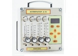 На лицевой панели корпуса аспираторов размещены ротаметры с входными штуцерами каналов и ручками установки (регулировки) расходов, сетевой разъем, дисплей, панель управления с кнопками включения/выключения прибора и насоса, кнопками программирования. Разъем для подключения к сети 12 В расположен на противоположной панели аспиратора.